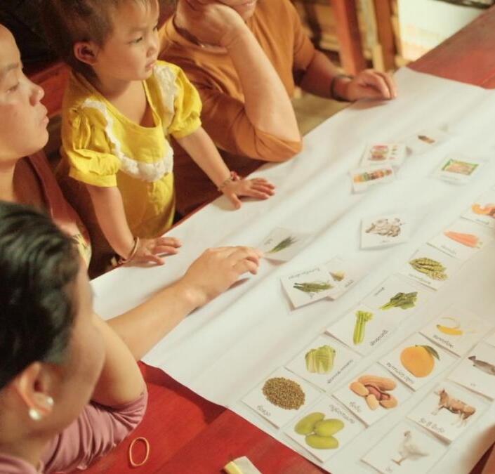 Dans la deuxième étape, des enquêtes quantitatives sont menées auprès des ménages des villages sélectionnés sur deux saisons ; des approches participatives (groupes de discussion, jeux, cartographie, calendrier, photovoice) sont utilisées pour identifier les FSFs et les obstacles à l’adoption d’une alimentation saine et équilibrée.